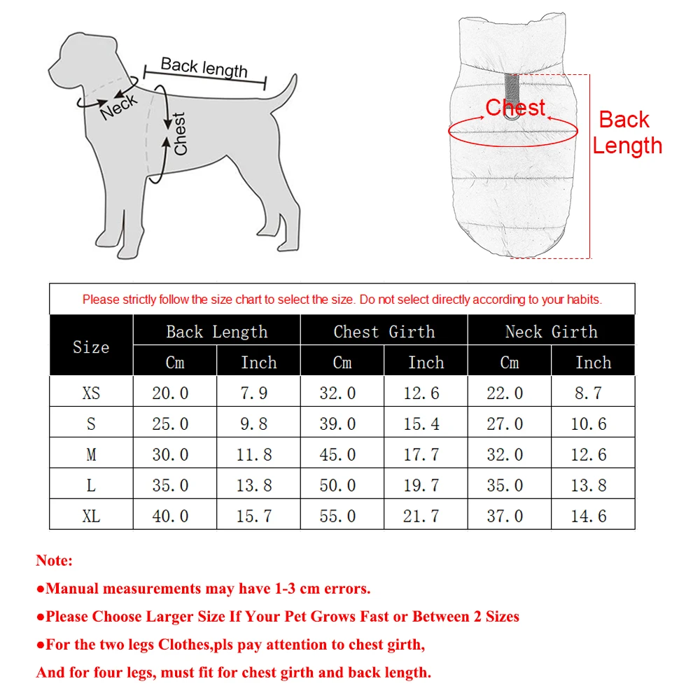 XS:Back Length 20cm/(7.9 inch);Chest Girth 32cm/(12.6 inch);Neck Girth:22cm/(8.7 inch)